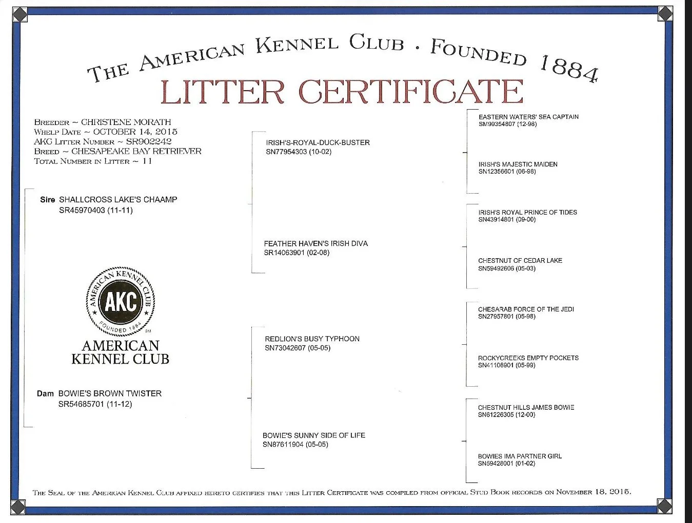 (Hagen — Litter Certificate)