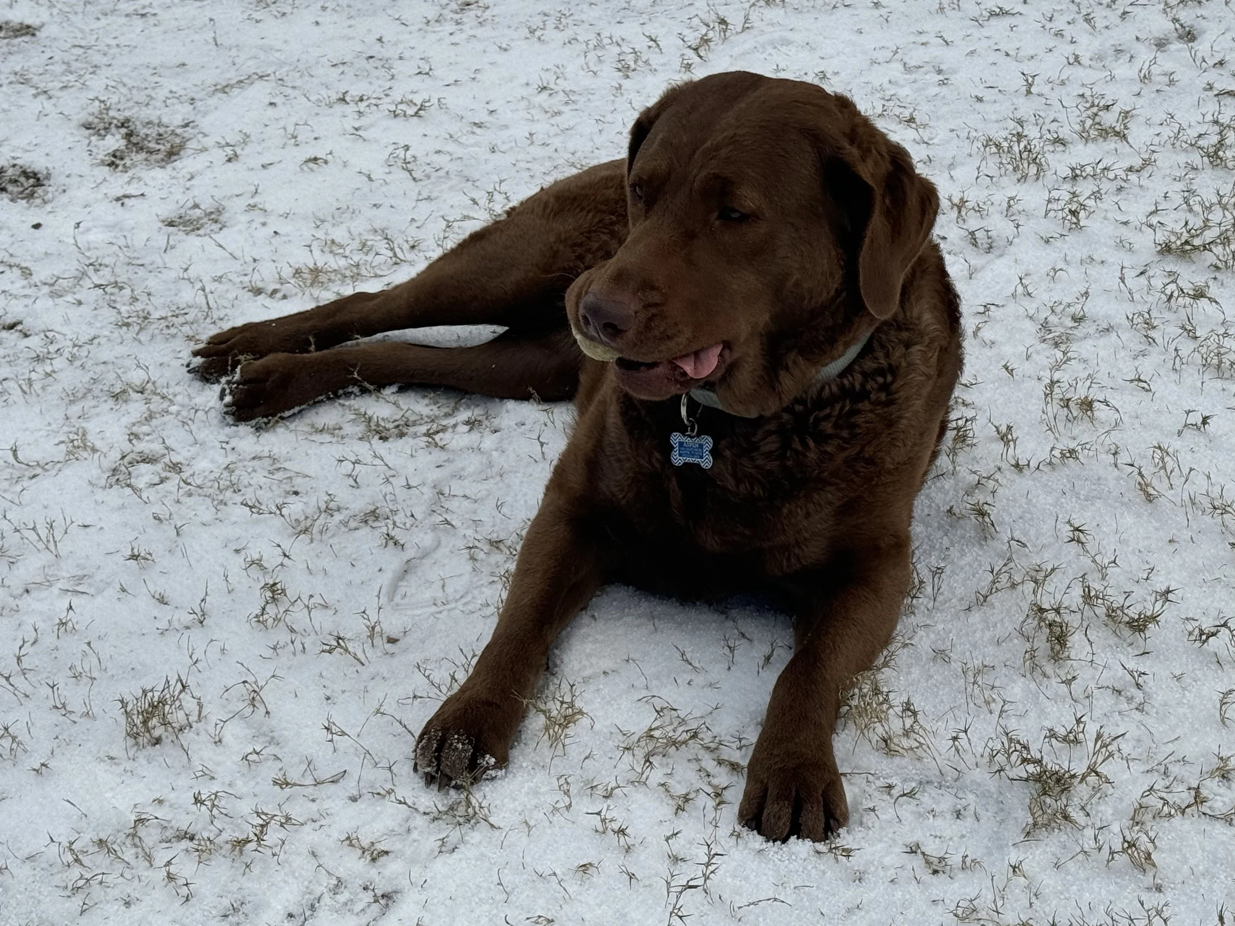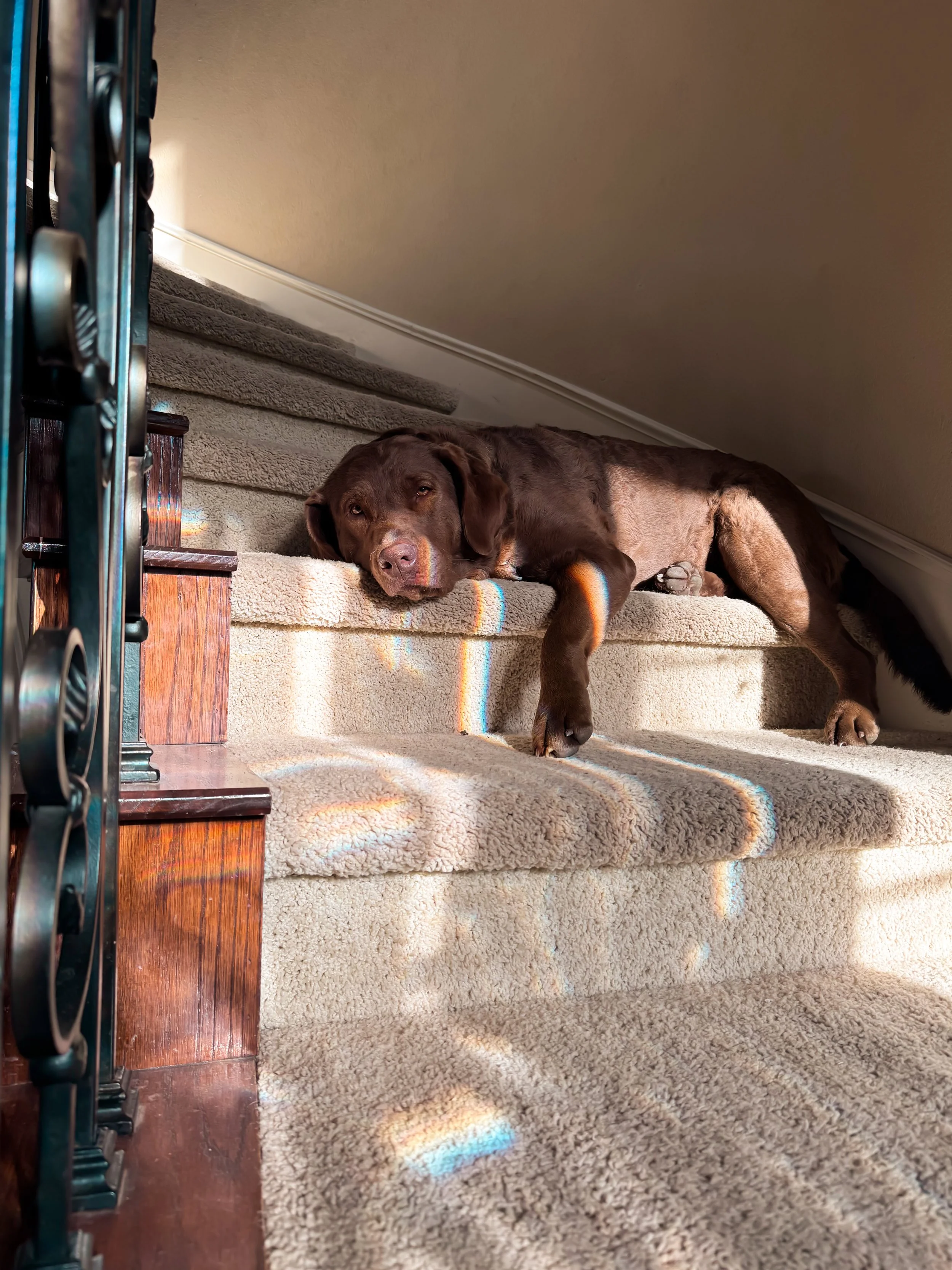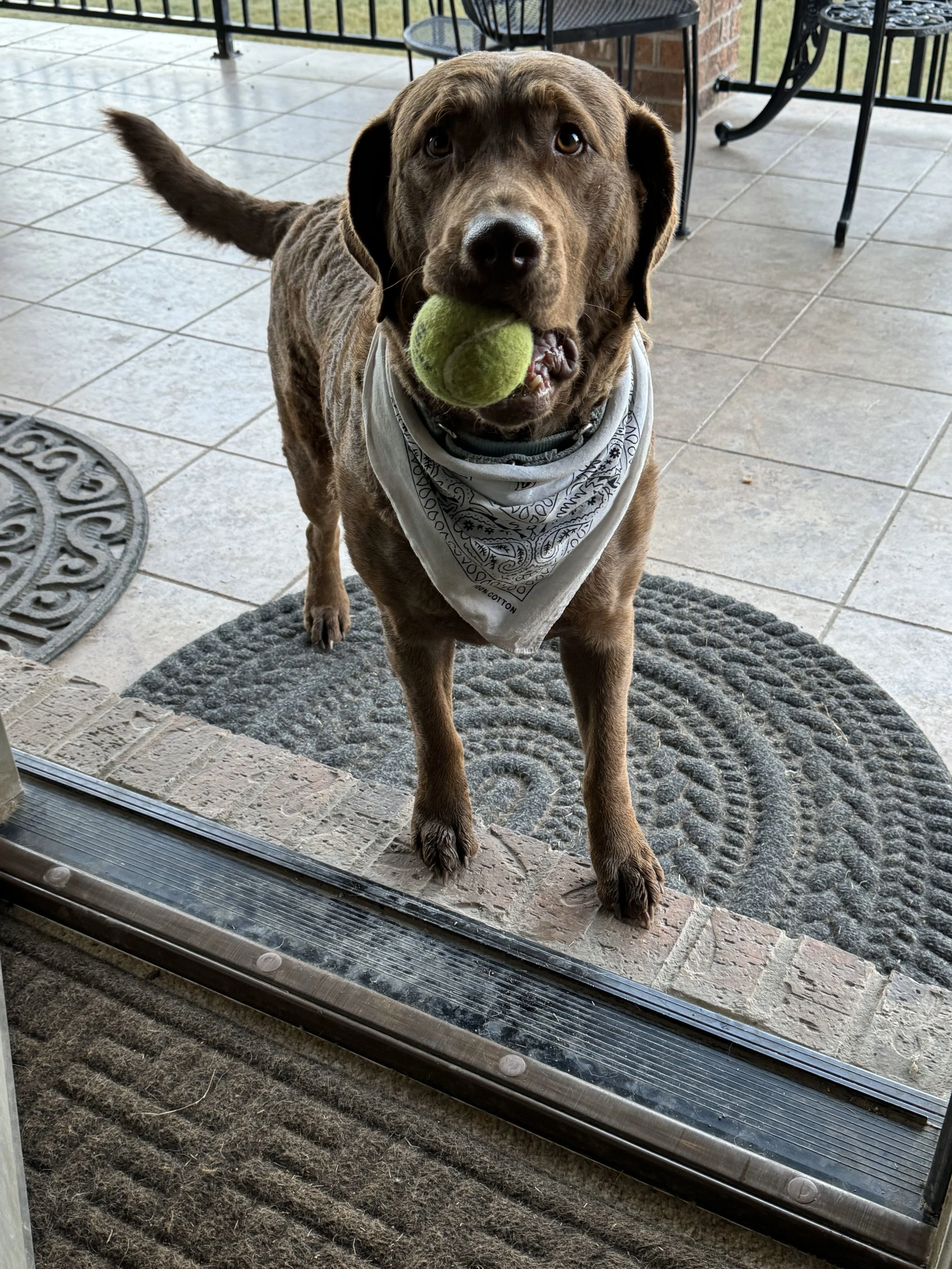 This girl was born to retrieve. As a pup, Aspen loved tennis balls—she almost always carries one with her. She even stashes them in the yard for later use. And our Aspen girl knows how to send us “fetch vibes.” Her cute, convincing “please play fetch with me” face is hard to resist. But even good dogs must learn to “wait.” She doesn’t lose hope. Fetch will happen . . . even if it’s dark. There is such a thing as “night fetch,” ya know.